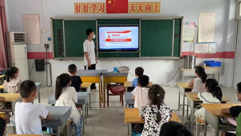 为庆祝中国共产党成立101周年,喜迎党的二十大胜利召开,引导青少年从小听党话、感党恩、跟党走,培养担当民族复兴大任的时代新人。7月4日太阳集团tyc539社会实践团队分别前往河北省定州市庞村镇东南宋小学、河北省邢台市任泽区北甘寨村小学,向员工们宣讲红色故事。通过重温雁翎队精神,回顾英雄征程,新时代新青年发言三个部分,让同学们了解红色精神,发扬红色精神。