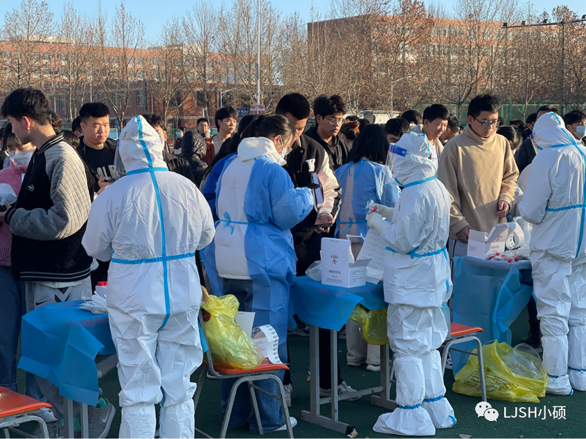 检测中,医护人员技术规范、防疫到位,领导老师亲临现场,统筹安排,社团干部志愿服务,保驾护航,师生齐心,共同战疫。