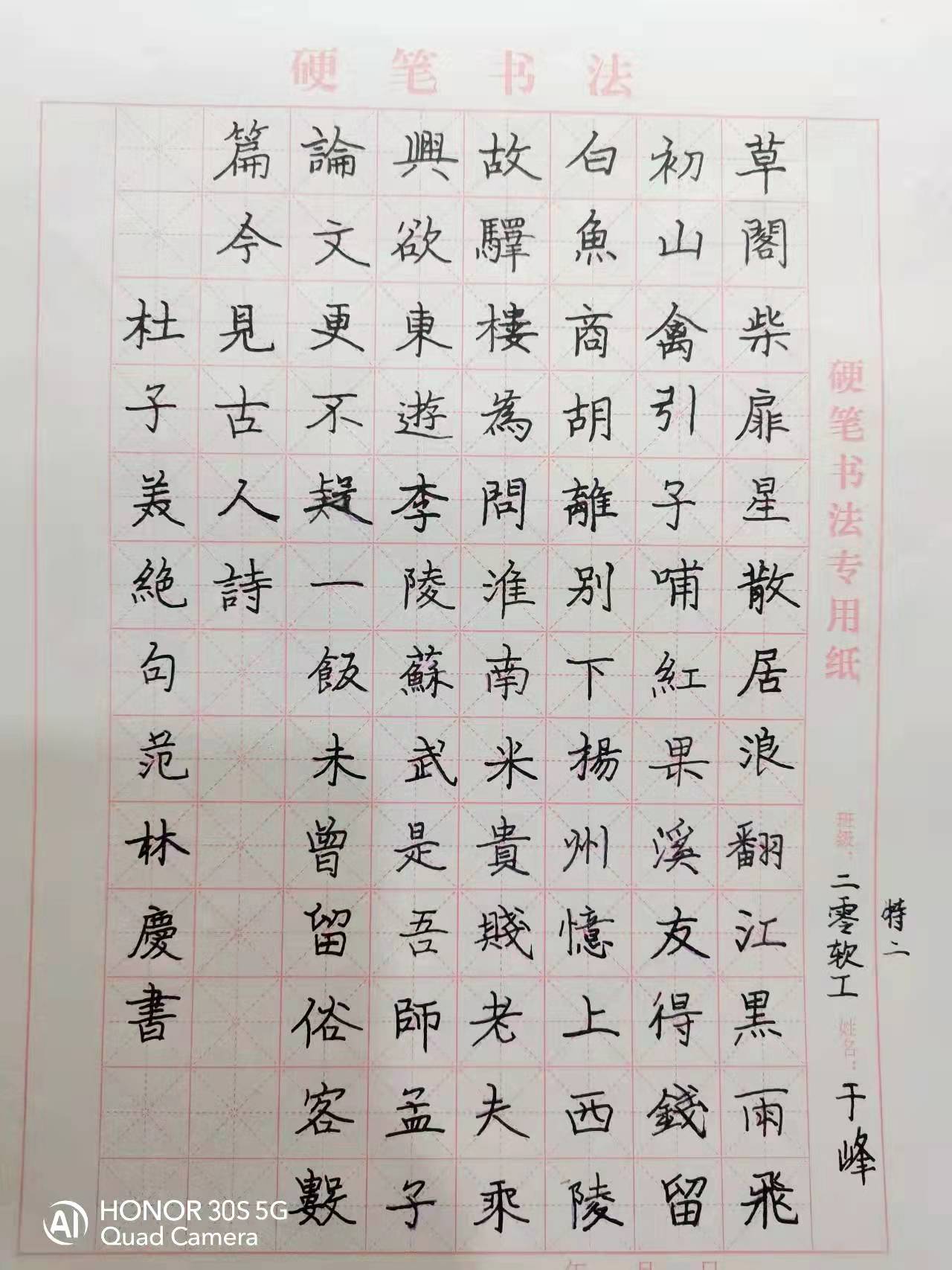 活动期间,软件学子积极热情参与,同学们以描红、影印、临摹、创作等方式来练习书法,作品横如阵排云,直如倒笋垂露,戈如百军弩发,点如危峰卵石,牵如万岁枯藤,纵如行云流水。既陶冶了情操又弘扬了民族传统文化。