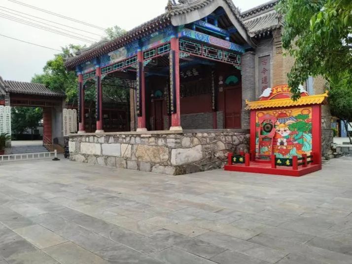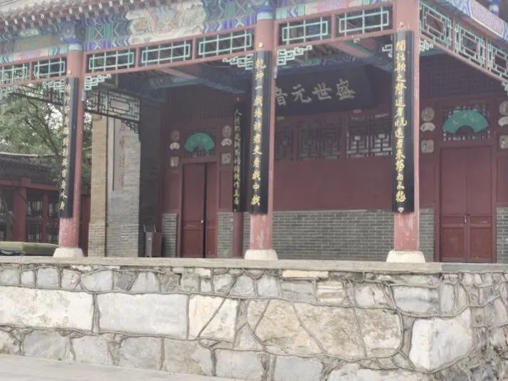 后来经过我们向当地村民询问以及了解,古戏楼位于村中心北大街西侧、西大街北侧,坐南向北正对观音堂。2014年市区政府的支持下,筹资重修此戏楼。这座戏楼近几年又开始有河北梆子,评戏之类的演出,也是重新让这座戏楼恢复了它本来的作用。戏楼的北面是坐北朝南的观音堂。观音堂内,两旁的六座古碑格外引人瞩目。冯骥才曾到此,看过以后,指着光绪年间一块碑上的“巨镇”说:“这说明大激店村曾经是很繁华的,历史上很有地位。”