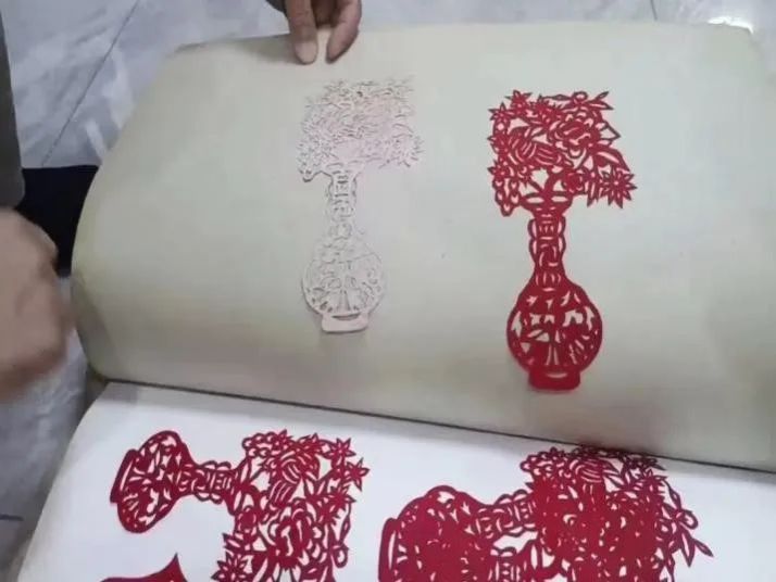 在问到剪纸工具时,刘志近先生为我们一一列举:纸、笔、剪刀、刻刀、订书器等等,简单的样式可以单一剪刀就可以完成,但是复杂的图案需要借助画图工具先打样,然后借助剪刀和刻刀来完成。