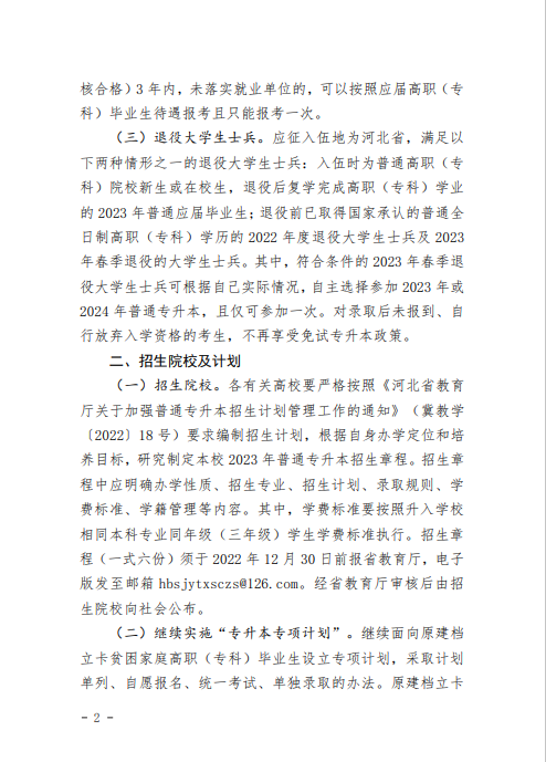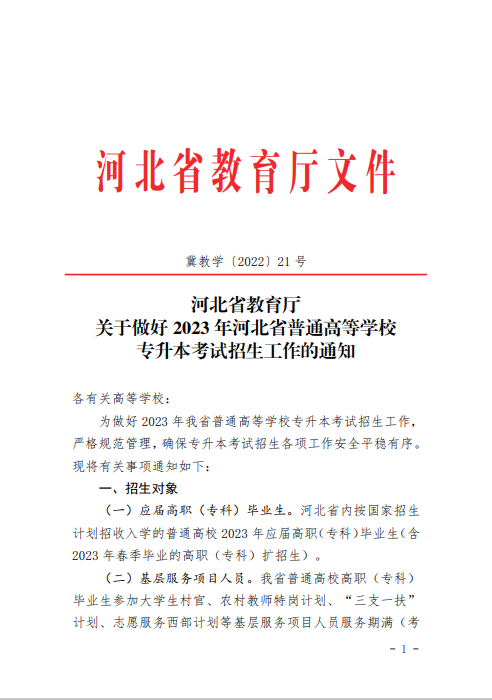 河北省教育厅关于做好2023年河北省普通高等公司专升本考试招生工作的通知