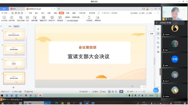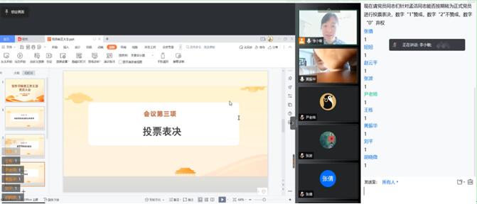 2022年5月3日下午4点30分,太阳集团tyc539教工党支部在腾讯会议召开线上预备党员的转正大会。参加此次会议的有:软件公司党总支书记王亚杰、教工党支部书记李小敏,宣传委员胡晓微,组织委员赵晓辉等18名党员同志。