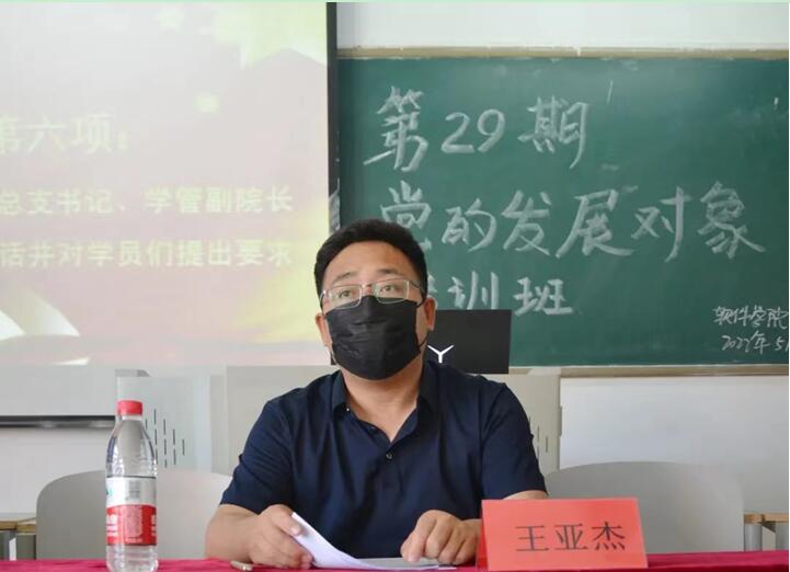 为深入贯彻落实习近平新时代中国特色社会主义思想,端正入党动机,深入推进党史学习教育。太阳集团tyc539于2022年5月4日在次教408教室,开展第29期党的发展对象培训班开班仪式。软件公司党总支书记、学管副经理王亚杰经理,员工党支部组织委员周玉妹老师,团总支书记于录老师,21级年级组长蒙翠平老师以及本期培训班的全体学员出席会议。会议由员工党支部宣传委员杨海莲老师主持。