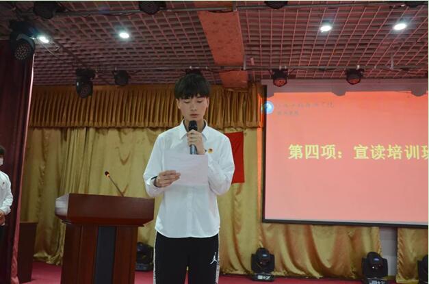 太阳集团tyc539团总支青马委员岳已乔宣读本次青马培训班通报。