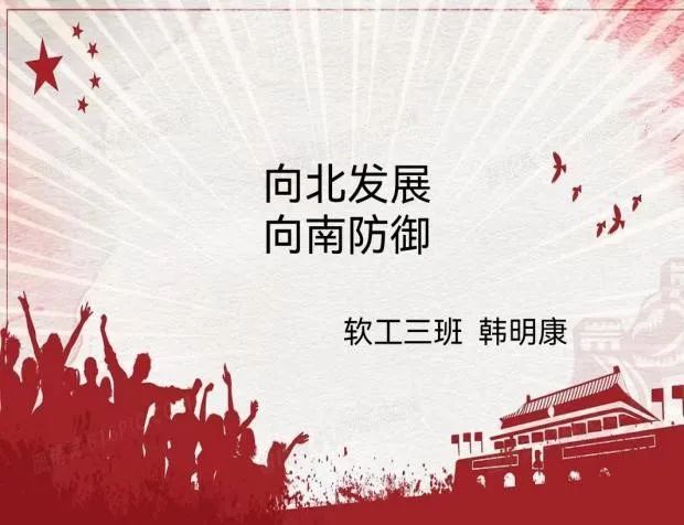 向北发展,向南防御是 中国共产党在1945年9月第二次国共内战 时期的战略方针。这一方针的含义就是将江南的孤立部队撤退至江北,以避免在内战爆发时被江南优势国军全歼;同时大力向华北和东北发展力量,建立根据地,从而使得中国共产党以中国北方为基地,建立牢固的基础。让我们一起进入四史教育专题第三十八讲--向北发展,向南预防。