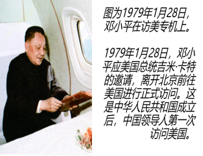 应美国总统吉米·卡特和夫人的邀请,中国国务院副总理邓小平和夫人卓琳于1979年1月29日─2月5日对美国进行了正式访问。邓小平在华盛顿、亚特兰大、休斯敦和西雅图等城市进行了参观访问,访问期间,邓小平、卡特总统分别代表中美政府签署了科技合作协定和文化协定;并且签署了两国在教育、农业、空间方面的合作的谅解的换文;方毅副总理、施莱辛格能源部长签署了两国在高能物理方面合作的协议;黄华外长、万斯国务卿签署了关于建立领事关系和互设总领事馆的协议;双方还同意签订贸易、航空、海运协定。