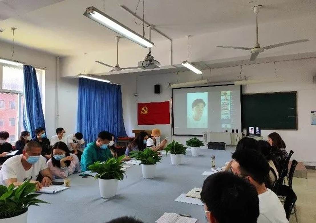 本次会议议题是讨论本支部预备党员提永刚等44名同志的转正事宜。因近期疫情反复,为配合疫情防控要求,在校外实习而无法返校参会的党员同志采取视频连线的方式参加了本次会议。