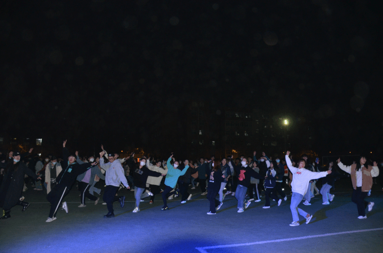 此次活动由于录、王峥老师作为示范教师,参加活动的还有周玉妹、蒙翠平、张跃也、王莹、宋旭等各位老师。伴随着优美的音乐旋律,同学们跟随老师一起跳舞律动,并吸引了越来越多的师生参与其中,大家边唱边跳,尽情欢乐。师生踏着轻快的舞步,舞出潇洒,跳出活力,展现了积极向上的风貌,青春洋溢的风采。