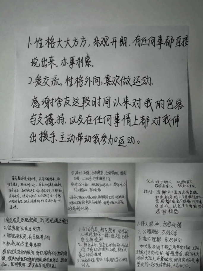 第二,不愿意与人沟通。有的员工因性格内向、敏感、害怕表达自己真实的情感,不愿意吐露内心,长时间感情积压可能导致情绪崩溃;有的员工不愿意打扰他人,独来独往,遇到困难不轻易向舍友开口寻求帮助。员工们提出以下改进措施:首先,敞开心扉,多与舍友沟通,舍友就是自己的家人,遇到困难及时向舍友求助大家合力解决问题;其次,收起自己敏感、害怕的心理,出现问题主动与舍友沟通及时解决,不要自我压抑,给自己和对方带来心理负担。