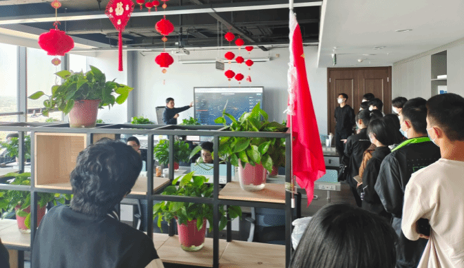 到达企业后,企业老师李龙首先给员工们介绍了公司的基本情况,并结合员工的专业让员工清楚本专业毕业后可以从事的工作,让员工对本专业的岗位有一个具象的认知;然后李龙老师带领员工参观公司并对公司的岗位做介绍;最后在公司的电子屏幕中介绍云影网络攻击诱捕系统,让员工对学习本专业激发出更浓厚的兴趣。参观期间,公司副总为同学们讲解了一场生动的讲座。他从行业角度为同学们解析当前网络安全的现状及发展趋势。并进一步介绍到,如今伴随着大数据、云计算、移动互联等技术的应用与发展,给我们的生活带来的前所未有的便捷,但我们在享受互联网红利时,也埋下了巨大的网络安全隐患。同时,为同学们讲解网络安全专业的现状、发展趋势以及就业前景,对自己毕业后的就业方向和奋斗目标也更加明确。