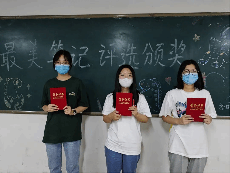 同学们在笔记中抄录讲授内容、回顾重点难点、标记薄弱环节,不断完善学科知识体系,深化专项学习,提高问题意识,将学与思结合、知与行并蓄。