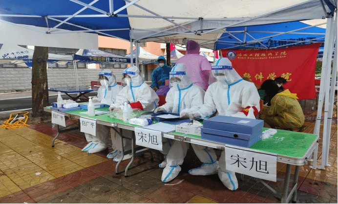 校园门口设立的重重排查与核对让人感到温暖,一进门就有“大白们”对员工们逐个进行核酸核验令人心安,就连离开家乡的焦虑感也缓解了不少。