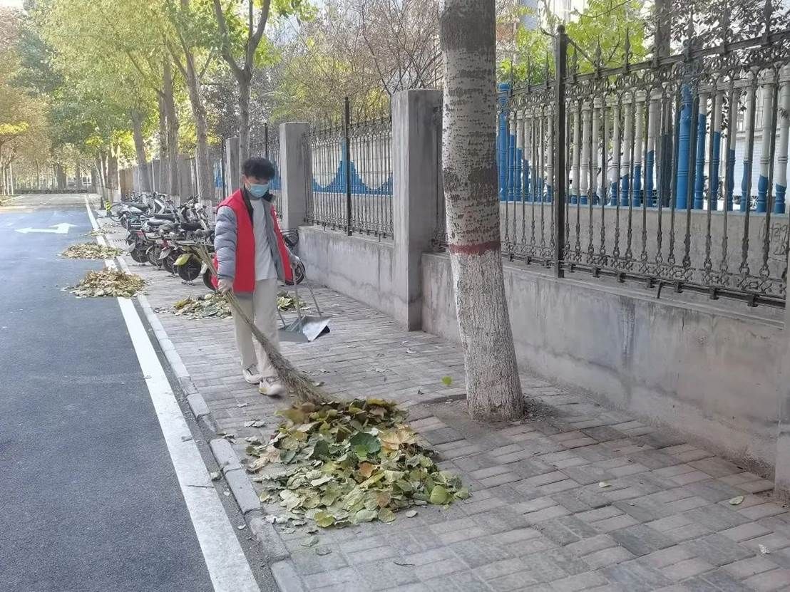 组织人对参与人员做了详细明确的分工,志愿者们个个热情高涨,不怕脏累,有的拿扫帚扫堆起来沉积的落叶,有的用手捡起来路边的垃圾。一个人拿着扫帚,另一个就用工具承装,志愿者们在互帮互助中感受集体的力量。在阳光下志愿者们认真清扫,良好的精神风貌为清凉的秋天增添了一份温暖。最后整个校园焕然一新,清扫活动在洁净的校园中结束。