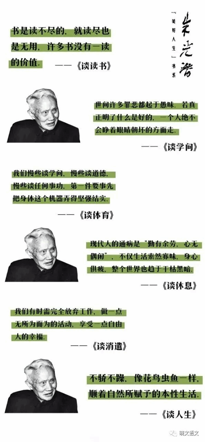 朱自清有言:朱光潜的著作,“头头是道,津津有味”,如“行云流水,自在极了”,“你想得知识固可读它,你想得一些情趣或谈资也可读它。如入宝山,你决不会空手回去的。”