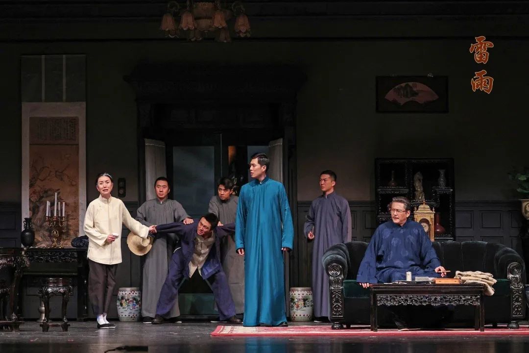 剧中以两个家庭、八个人物、三十年的恩怨为主线,伪善的资本家大家长周朴园,受新思想影响的单纯的少年周冲,被冷漠的家庭逼疯了和被爱情伤得体无完肤的女人蘩漪,对过去所作所为充满了罪恶感、企图逃离的周萍,还有意外归来的鲁侍萍,单纯着爱与被爱的鲁四凤,受压迫的工人鲁大海,贪得无厌的管家等,不论是家庭秘密还是身世秘密,所有的矛盾都在雷雨之夜爆发,在叙述家庭矛盾纠葛、怒斥封建家庭腐朽顽固的同时,反映了更为深层的社会及时代问题。