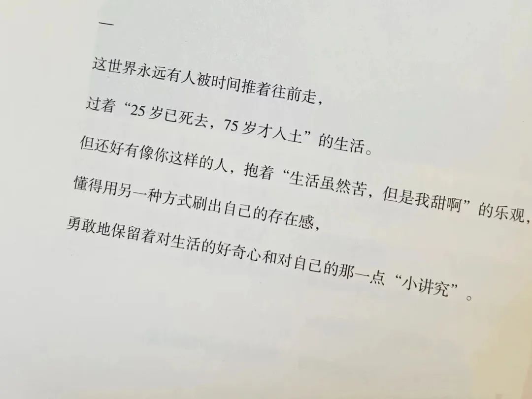那一刻才明白阿太曾经对我说过的一句话,才明白阿太的生活观:我们的生命本来多轻盈,都是被这肉体和各种欲望的污浊给拖住。阿太,我记住了。“肉体是拿来用的,不是拿来伺候的。”请一定来看望我。