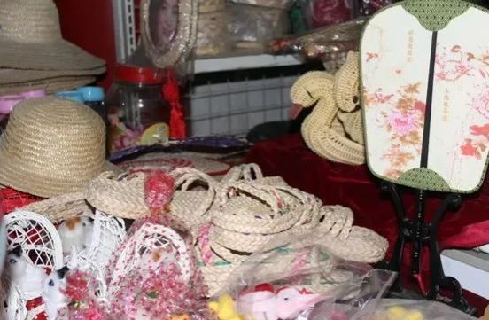 尖角瓦房红墙砖,团队成员进入馆内,就看到了琳琅满目的草编工艺品。水果篮、装菜的簸箕 斗笠、草编水壶、草编拖鞋、草帽,随处可见草编的花瓶、屏风、京剧脸谱、十二生肖,以及各种草编时装,形式多样,颜色绚丽。其中,最引人注目的要数绣着小猪佩奇图案的草编挂件,传统工艺品融入现代元素,做到了传统与创新的完美融合,在盈利的同时发挥了其文化价值。馆长向大家讲述了大名悠久的历史,随后便开始介绍有代表性的草编工艺品,大家才明白,原来每件工艺品都有它特殊的意义,手艺人把一根根麦秆加以编织,一件件精美的草编工艺品就在他们指尖诞生,柔和又不失坚韧,简朴又不失精美。同时,馆长也道出了草编发展的困境。近年来,由于经济的快速发展,机器制造带来的冲击,卖出草编产品补贴家用的模式已不再是时代潮流。机器批量生产的草编产品价格低,使传统的手工草编很难有市场。再加上大名草编工艺品制作费时、费力,从事此项手工艺的人员越来越少,年轻人大多不愿意再从事草编行业,草编传承出现了断层,发展陷入了困境。听到这里,大家深感担忧,非遗的保护与传承刻不容缓,同时,传统文化产品的创新尤为重要。