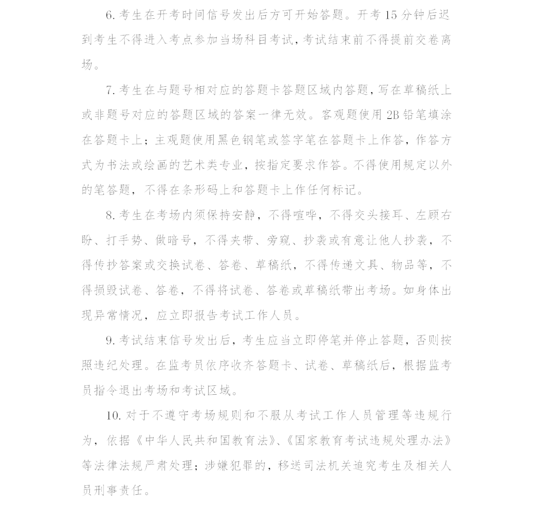 3.考试时间以北京时间为准,开考15分钟后不允许考生进入考点参加当场科目考试,考试结束前考生不得提前交卷离场。