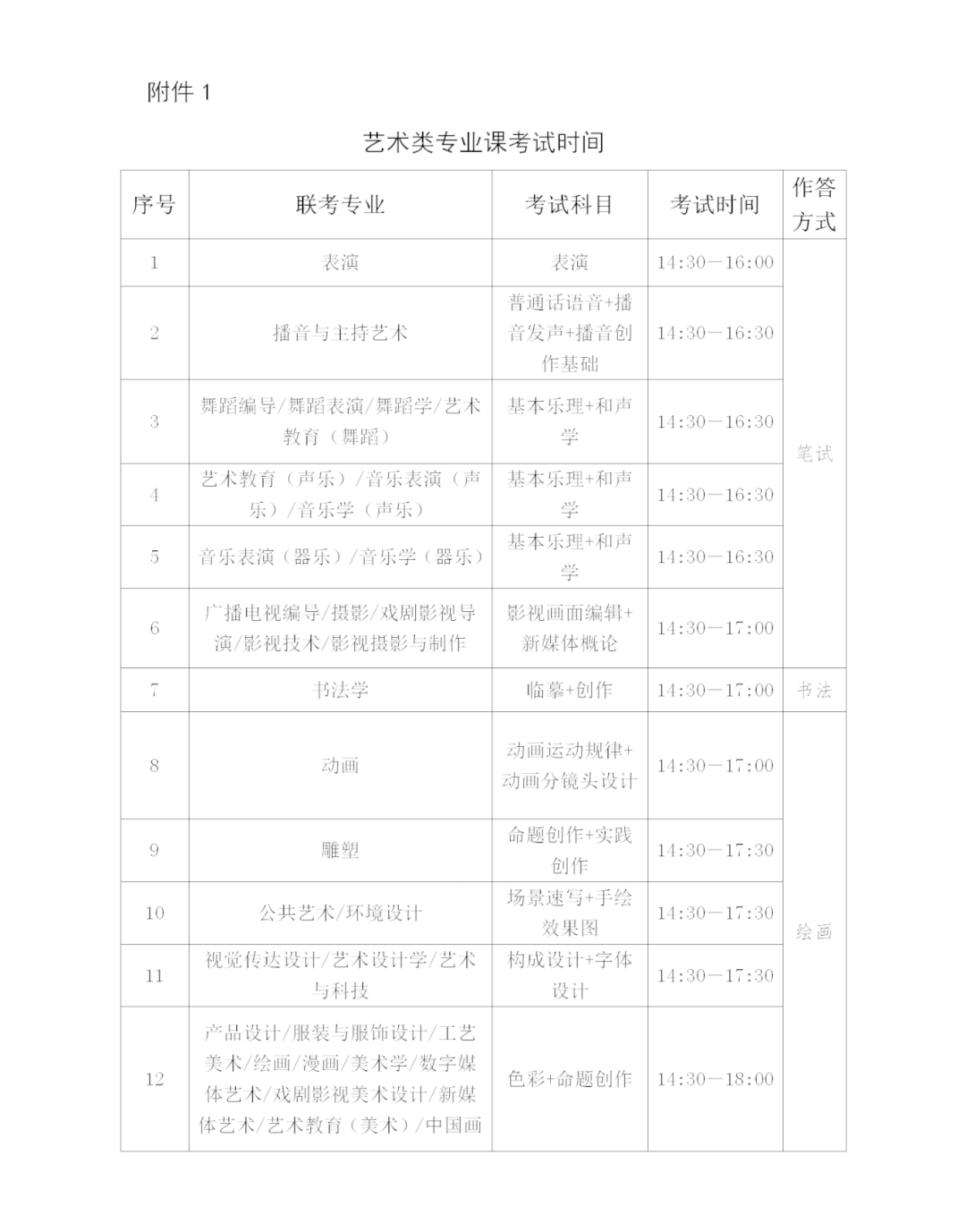 2.专业综合(职业适应性)考查:非艺术类专业考试时间为下午14:30-17:00;艺术类专业开考时间为下午14:30,结束时间详见附件1。