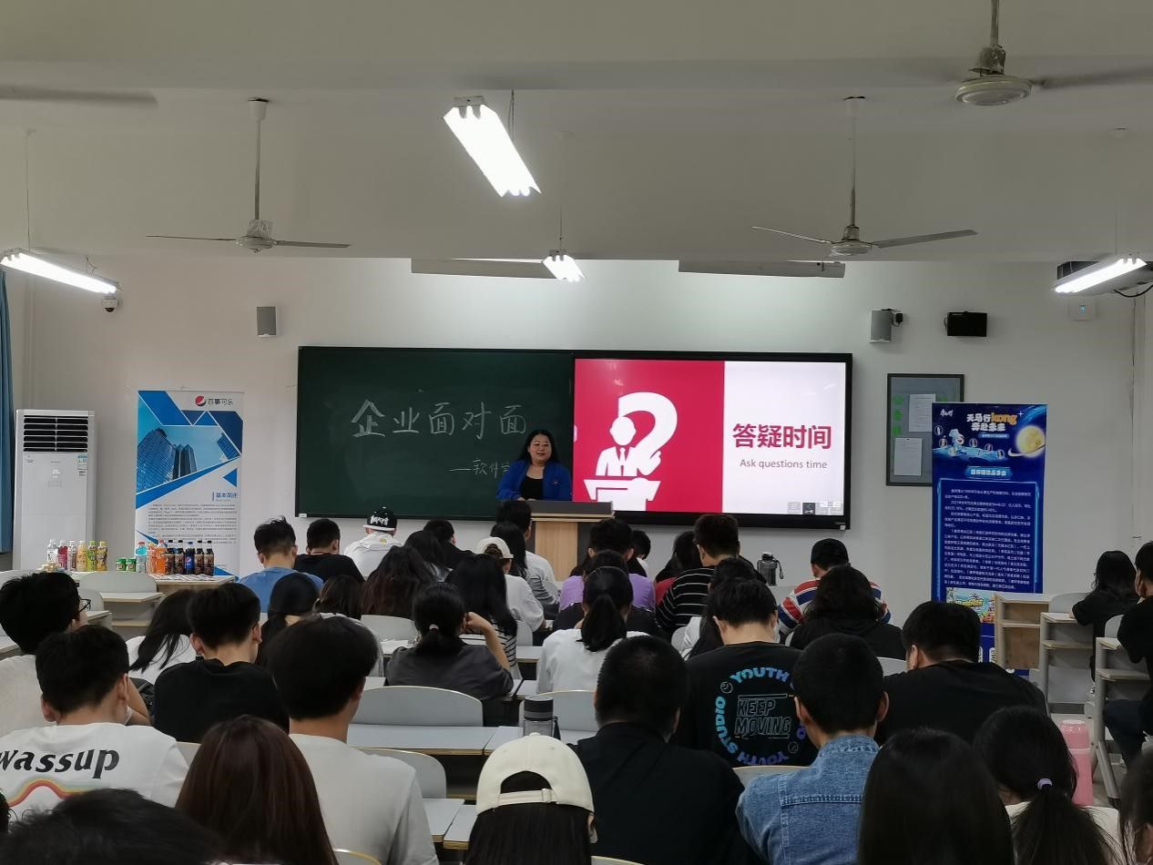 招聘会上,分别由康师傅、百事可乐事业部代表讲解公司文化、发展平台及福利、岗位需求以及企业内部的招聘流程与晋升路线。在随后的答疑环节中,同学们积极提出自己的问题,公司分别进行解答。最后,观看企业视频,了解公司员工动态。