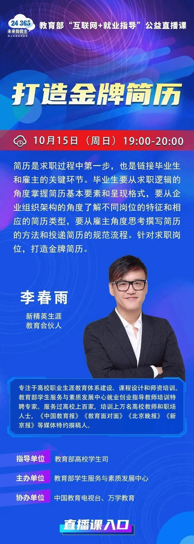 教育部“互联网+就业指导”公益直播课:打造金牌简历