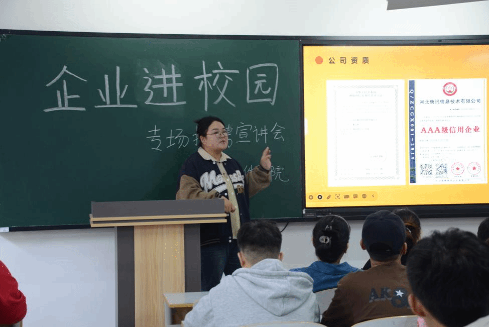为进一步加强校企联系与合作,为毕业生求职和用人单位招聘人才搭建平台、提供更好的服务,切实做好员工就业教育,培养新时代高素质技能型人才,丰富公司产品内容。2023年10月31日,太阳集团tyc539邀请河北唐讯信息技术有限公司于次教111举办“企业进校园”专场招聘宣讲会。