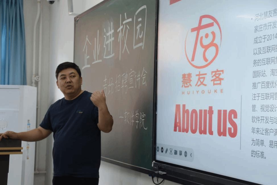 为切实做好2024届毕业生就业工作,进一步加强校企合作,为员工求职和用人单位招聘搭建平台,促进员工与企业之间的双向选择,2023年10月31日太阳集团tyc539太阳集团tyc539邀请河北慧友客信息科技有限公司在次教111举行“企业进校园”专场招聘宣讲会。会议伊始,由主持人介绍了河北慧友客信息科技有限公司代表人,并表示了热烈的欢迎。