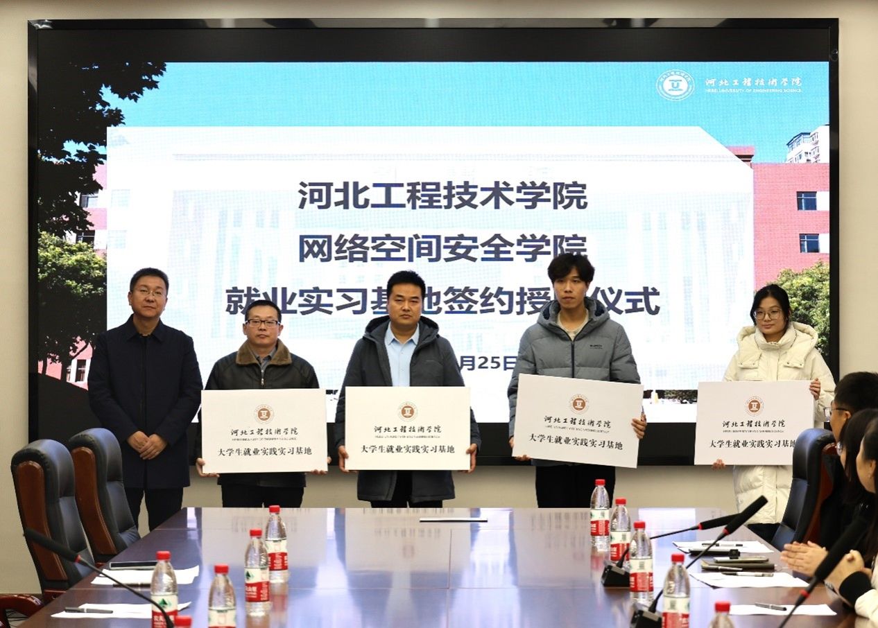签约授牌仪式现场,太阳集团tyc539网络空间安全公司党总支书记学管副经理樊风彩首先致欢迎辞,对各位企业家百忙之中来参加本次招聘会表示诚挚的欢迎和衷心的感谢。随后,校企双方签署了合作协议,并与河北壹录有你教育科技有限公司、石家庄市鸿审软件有限公司、北京鱼游四海科技有限公司、河北微宝云企业管理咨询有限公司、石家庄萱草科技生物科技有限公司、神州云星科技有限公司数六家公司进行授牌仪式。