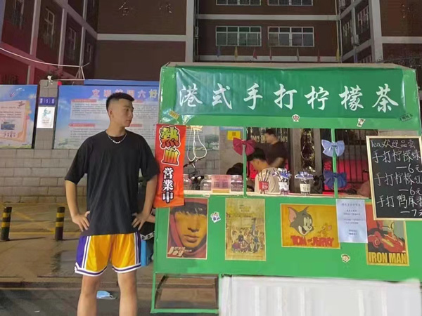 在老员工活中累计献血两次,在大一暑假期间,积极参加公司下发的三下乡主题活动,效果显著;而且他在暑假的空闲时间,积极响应国家号召,参与国家地摊经济的发展,在家乡摆摊经营柠檬茶的生意,是一名合格的地摊经济建设者。