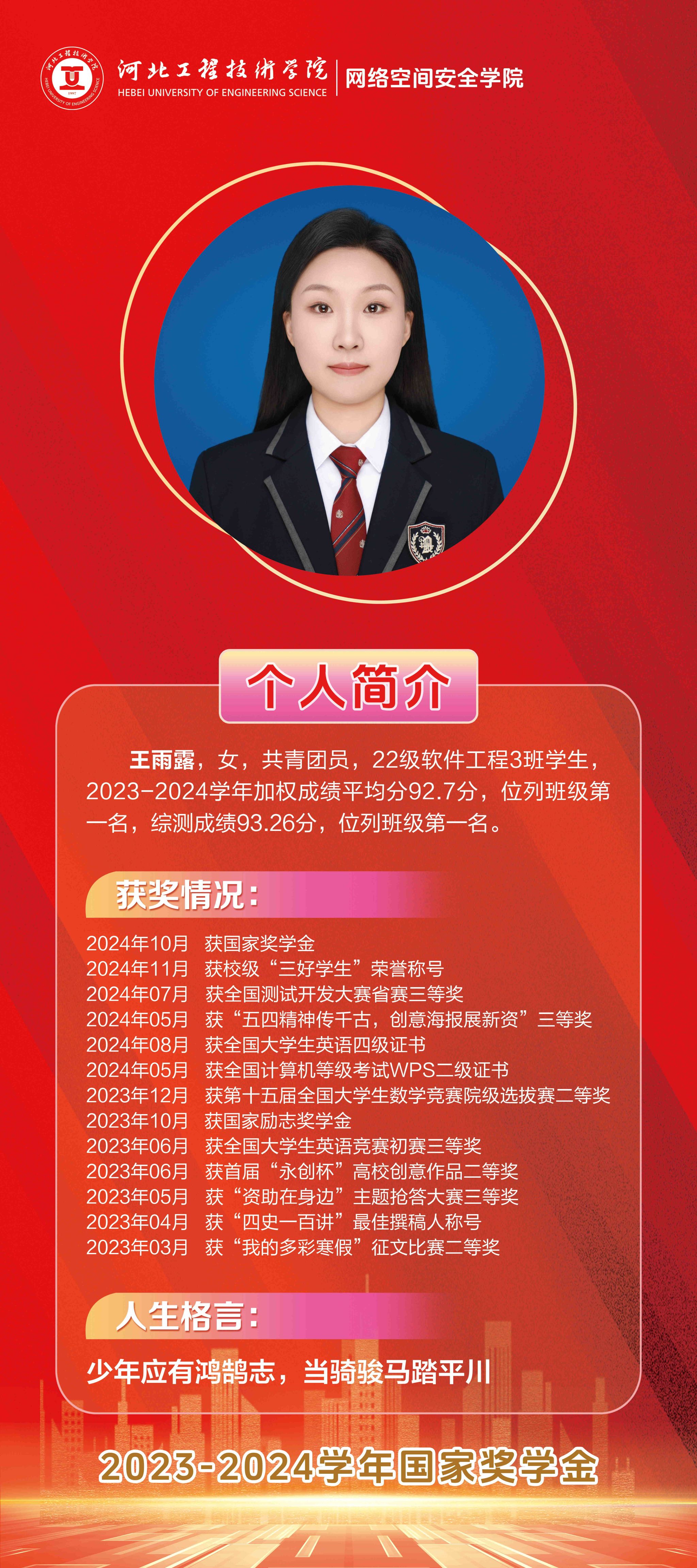 国家奖学金 | 王雨露:少年应有鸿鹄志,当骑骏马踏平川