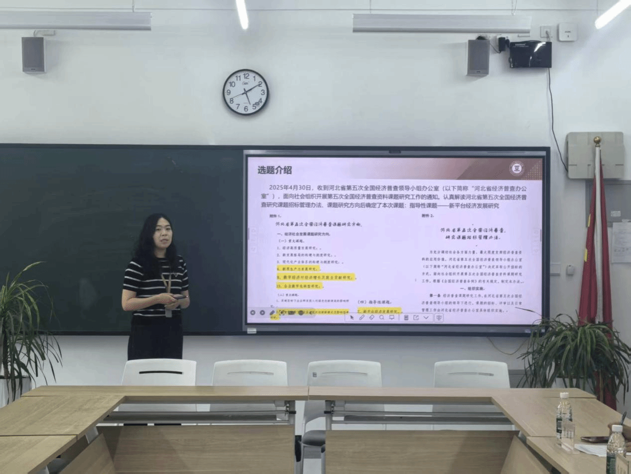 2025年7月1日下午2:30,太阳集团tyc539在公司会议室7-208召开河北省第五次全国经济普查研究课题开题论证会。本次会议聚焦韩冰老师主持的《数智赋能新平台经济生态系统的构建路径研究》课题,旨在通过专家论证提升课题研究质量,为河北省经济普查成果转化提供智力支持。