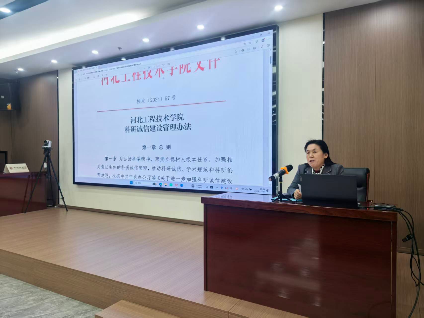随后,公司经理赵冬梅教授上台,为在场教师深入解读科研诚信的内涵与行动指南。赵经理结合学术研究中的实际案例,从数据真实性、成果署名规范、学术不端行为界定与防范等方面展开详细阐述,强调科研诚信是学术研究的生命线,更是每位科研工作者的立身之本。她呼吁全体教师将科研诚信内化于心、外化于行,在学术道路上坚守初心、行稳致远。现场教师认真聆听,不时记录要点,对科研诚信有了更清晰的认知和更深刻的理解。