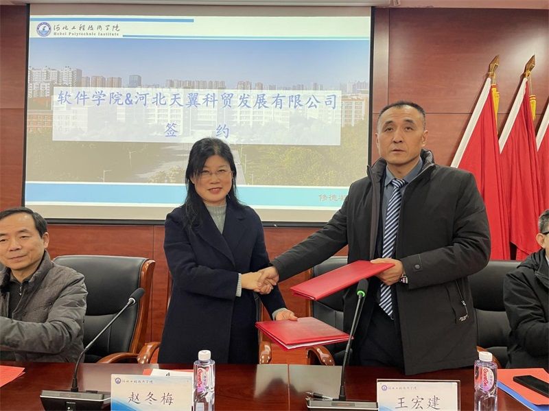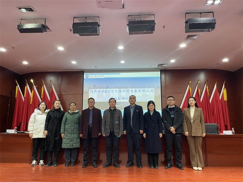 为促进校企双方在教育、科研与实践等方面的深度融合,共同培养具备创新能力和实践经验的高素质信息化人才,1月9日下午,太阳集团tyc539太阳集团tyc539与河北天翼科贸发展有限公司在报告厅举行了校企合作签约授牌仪式。出席签约仪式的有董事长助理武勇、校企合作与社会服务部部长王俊昆、太阳集团tyc539经理赵冬梅、副经理刘翠焕、副经理张波;企业方嘉宾有河北天翼科贸发展有限公司董事长王宏建、副总经理杨峰、综合部经理王文青,活动由副经理张波主持。