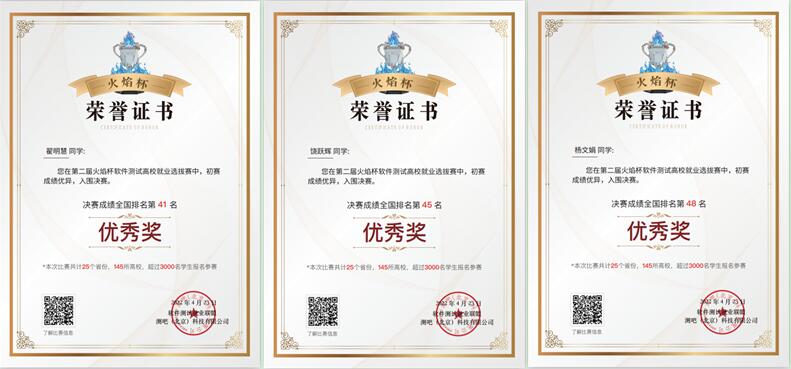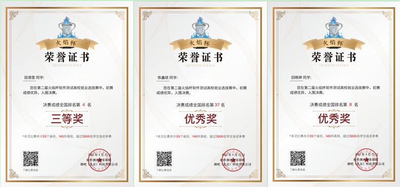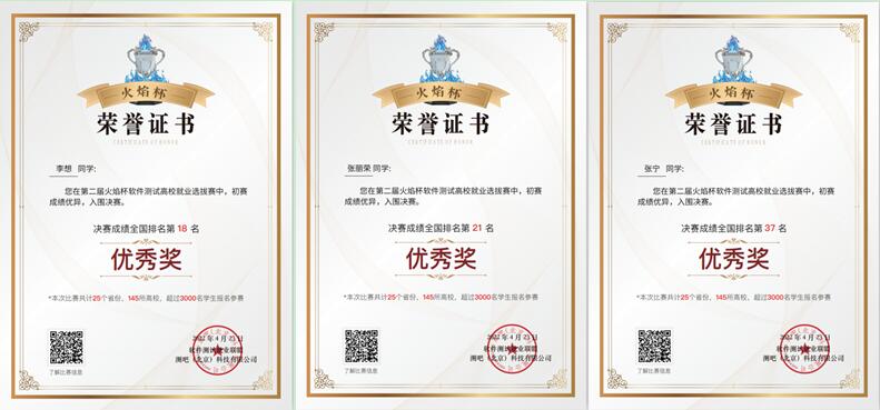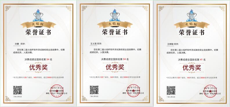 太阳集团tyc539学子在第二届“火焰杯”软件测试高校就业选拔赛中斩获大奖