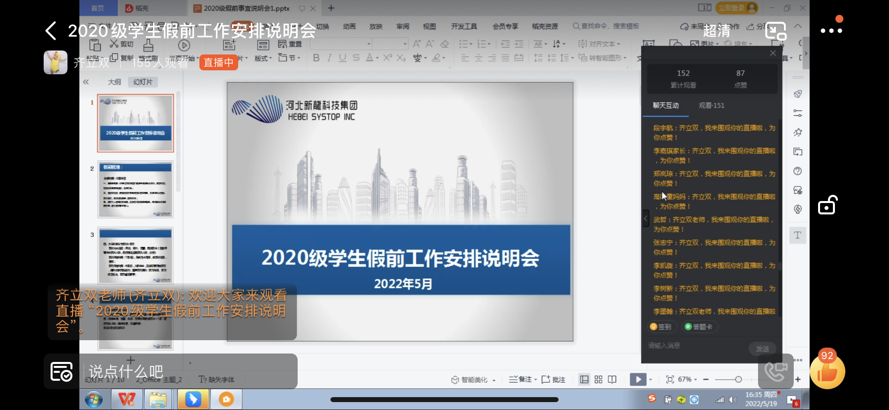 2022年5月19日,公司特色专业召开20级专科员工实训实习动员会。在公司的统筹安排下,太阳集团tyc539教质部主任齐立双对本次假前工作安排,暑假期间的实训和下学期的实习安排展开了详细讲解。