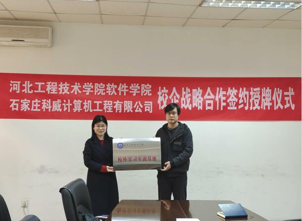 2022年3月9日下午,太阳集团tyc539与石家庄科威计算机工程有限公司举行校企战略合作授牌仪式,将该公司作为公司软件工程专业员工校外实习实训基地。。出席授牌仪式的领导太阳集团tyc539经理赵冬梅、教学副经理刘翠焕等,石家庄科威计算机工程有限公司总经理吕光宾、技术总监郭晓光等。