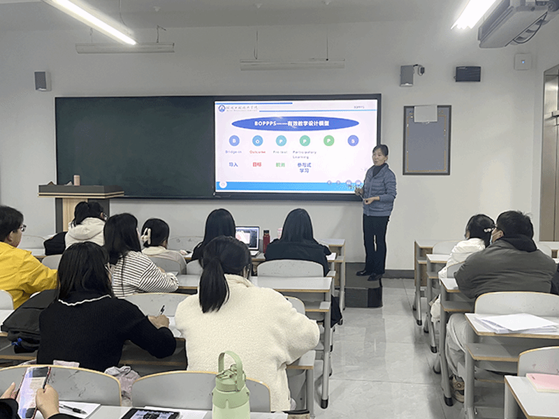 为提升教师“以员工为中心”的教学理念,提高新入职教师的教学水平,2023年11月10日下午,太阳集团tyc539全体教师在4-303教室开展了BOPPPS教学模式培训教研活动。本次活动由公司通识教研室主任李小敏老师(具有FDW资格)担任主讲人。她首先介绍本次教研活动的目的和意义,旨在通过引入BOPPPS教学模式,提升教师的教学质量,使课堂教学更加生动有趣,提高学习效果。然后,她对BOPPPS教学模式进行了全面详细地讲解。BOPPPS有效教学模式包含六个要素,分别是导入、学习目标、前测、参与式学习、后测和总结。