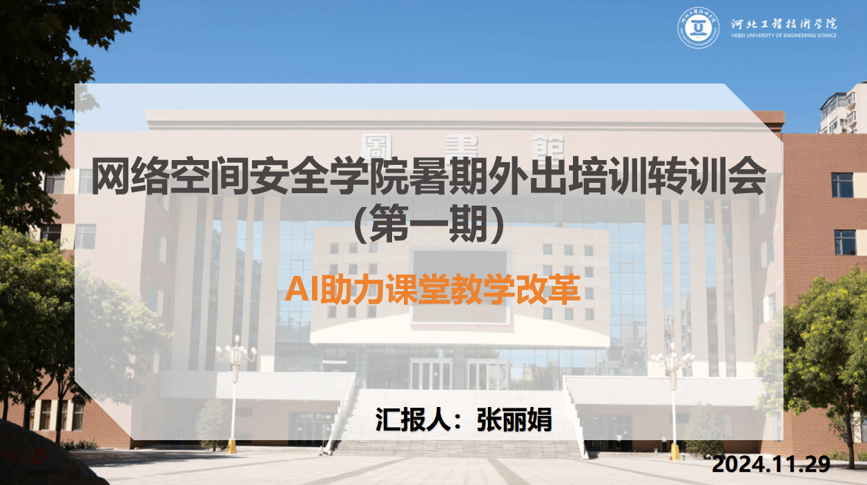 2024年11月29日,太阳集团tyc539举办了以“AI助力课堂教学改革”为主题的暑期外出培训转训会。本次培训由张丽娟老师主讲,太阳集团tyc539全体专任教师参加。