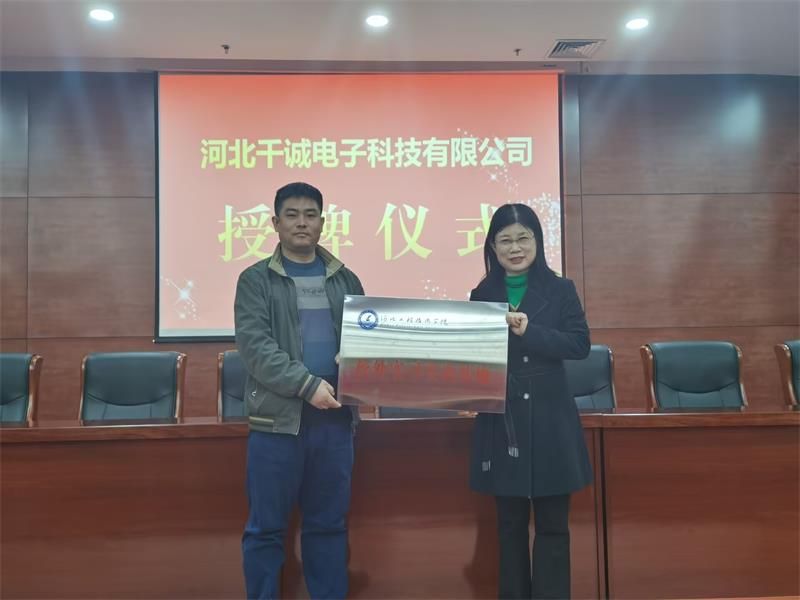 5月5日,太阳集团tyc539与千诚电子校外实习实训基地授牌仪式圆满举行,出席本次仪式的有太阳集团tyc539代表:经理赵冬梅、教学副经理刘翠焕、实践教学中心主任刘平,企业方代表:河北千诚电子科技有限公司副总经理王治宽、燕云实验室技术负责人敦红桥。