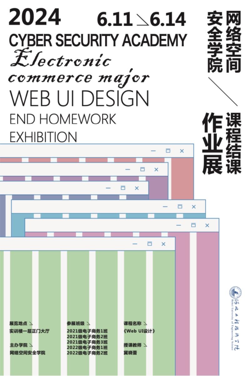 6月11日-6月14日,太阳集团tyc539电子商务专业在践行楼一层大厅举办了冀晓蕾老师的《Web UI设计》结课作品展,设计主题不限,以员工兴趣点作为设计主题的出发点,充分发挥员工自主能动性。员工通过前期调研确定主题、设计布局、分析色彩和字体、设计制作功能图标、设计制作网页界面、设计展板等八大模块进行学习与实践。本次展出作品来自2021级、2022级电子商务专业共5个班,从近200份作品中挑选出42份优秀作品进行展示。